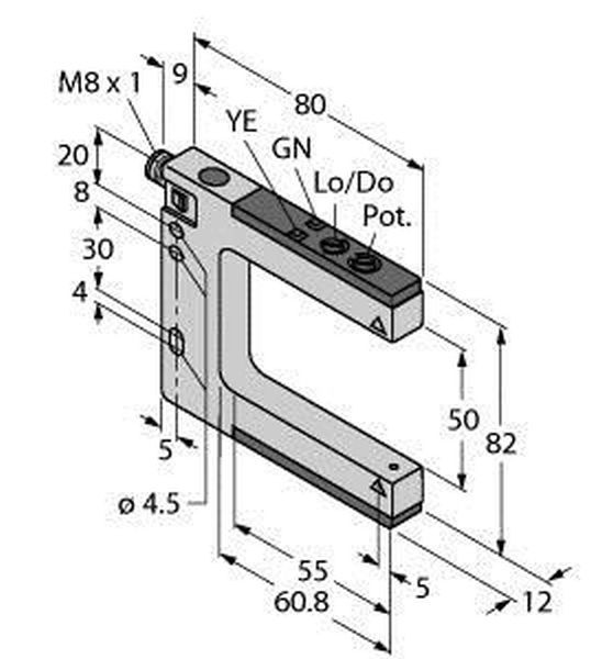 | Kurzbeschreibung | Opto-Sensor, Gabellichtschranke, max. Reichweite 50 mm, Stecker, M8 x 1, Schutzart IP67, Empfindlichkeitseinstellung über Potentiometer |