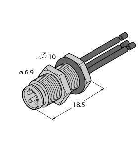 Zubehör für Aktuator-/Sensorleitungen, Flanschstecker mit Litzen, Hinterwandmontage, robuster und fertig konfektionierter Rundsteckverbinder, Schutzart IP67, mit 0,2m Litze, auch mit anderen Litzenlängen lieferbar