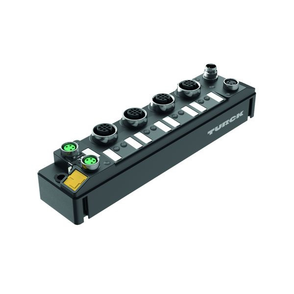 Kompaktes Multiprotokoll-I/O-Modul für Ethernet, 8 universelle digitale Kanäle als pnp Eingänge oder Ausgänge 2 A, PROFINET Device, EtherNet/IP Device, Modbus TCP Server, CC-Link IE Field Basic, Integrierter Ethernet-Switch, Unterstützt 10 Mbps / 100 Mbps, 2x M8, 4-pol, Ethernet-Feldbusverbindung, PROFINET S2 Systemredundanz, Glasfaserverstärktes Gehäuse, Schock- und schwingungsgeprüft, Vollvergossene Modulelektronik, Schutzart IP65/IP67/IP69K, 4-poliger M8 Steckverbinder zur Spannungsversorgung, Galvanisch isolierte Spannungsgruppen, ATEX Zone 2/22, CCC-Ex, Diagnose der Versorgung pro I/O-Steckplatz, Max. 2 A pro Ausgang, Ausgangsdiagnose pro Kanal, Zwei frei wählbarer digitale Kanäle pro Steckplatz, Pin1 schaltbar pro I/O-Steckplatz, ARGEE programmierbar