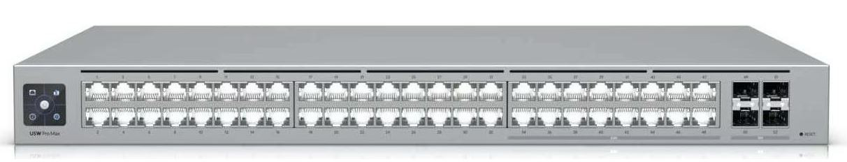 Der Ubiquiti Pro Max 48 ist ein 48-Port-Switch mit 2,5 GbE, Layer 3 Features und Etherlighting.