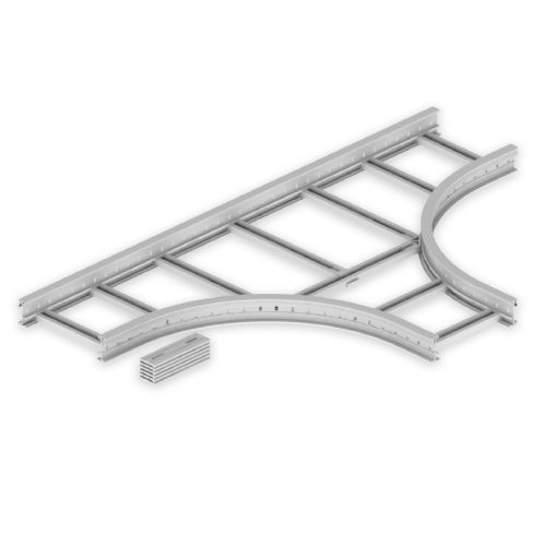 Element zur Ausführung von 90°-Abzweigungen. Krümmungsradius von 600 mm. Stoßstellenverbinder sind zur einfachen Montage im Lieferumfang enthalten. Halogenfreies isolierendes Material. Farbe: Lichtgrau RAL 7035