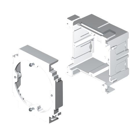 Für den Schutz der Verbindungen und die Befestigung der Installationsgeräte. 2 vormontierte Schrauben werden mitgeliefert. Isolierendes Material. Einfache Montage. Schutzart gegen äußere mechanische Beanspruchung. Schutzgrad IK08.