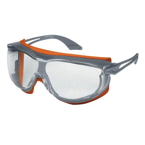 Mit der uvex skyguard NT wurden die Vorteile einer Bügelschutzbrille mit denen einer Vollsichtbrille vereint: Eine fest an das konzeptionell einfache Rahmenelement angespritzte TPU-Auflage schirmt dabei die Augen vollständig gegen umherfliegende Partikel ab. Die flexible Weichkomponente schmiegt bequem an das Gesichts des Trägers an und lässt sich einfach für den Dauergebrauch reinigen.