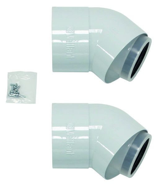 | Kurzbeschreibung | VAILLANT Bogen 45 Grad (2 St.) Brennwert Luft-/Abgasführung, PP, 80/125 mm |