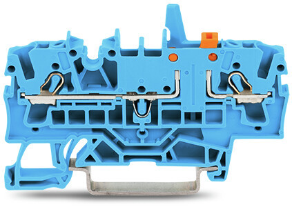 2-Leiter-Trenn- und Messklemme; mit mechanischer Verriegelung; mit Prüfmöglichkeit; Trennmesserhalter orange; für Anwendungen Ex i geeignet; für Tragschiene 35 x 15 und 35 x 7,5; 2,5 mm²; Push-in CAGE CLAMP®; 2,50 mm²; blau