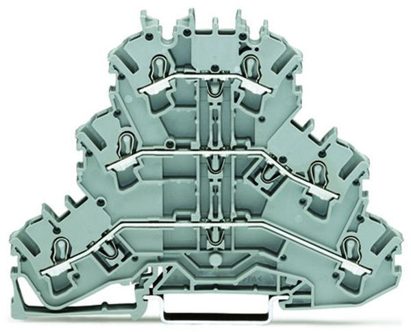 Durchgangs-/Durchgangs-/Durchgangsklemme Dreistockklemme; Durchgangs-/Durchgangs-/Durchgangsklemme; L/L/L; ohne Beschriftungsträger; für Anwendungen Ex e II geeignet; für Tragschiene 35 x 15 und 35 x 7,5; 2,5 mm²; Push-in CAGE CLAMP®; 2,50 mm²; grau
