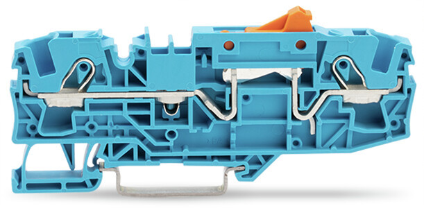 2-Leiter-Trennklemme; mit schwenkbarem Trennmesser; mit Prüfmöglichkeit; Trennmesserhalter orange; für Tragschiene 35 x 15 und 35 x 7,5; 6 mm²; Push-in CAGE CLAMP®; 6,00 mm²; blau