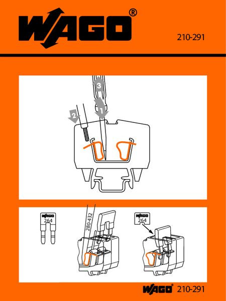Stickers for operating instructions; for front-entry, miniature rail-mounted terminal blocks; 264 Series