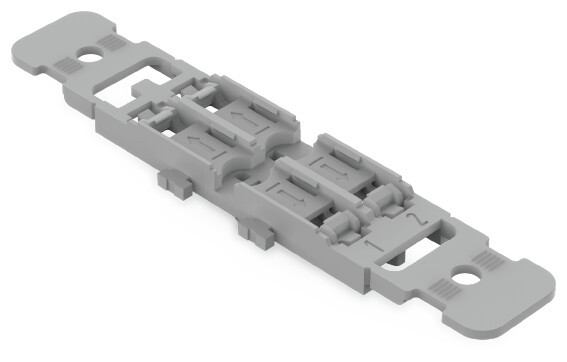 Befestigungsadapter mit Zugentlastung; 2-fach; für Durchgangsverbinder mit Hebel; mit Rastfuß; grau