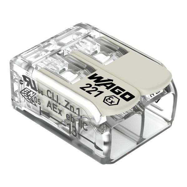 | Kurzbeschreibung | Verbindungsklemme mit Hebeln,für alle Leiterarten,für Anwendungen Ex e,transparent |