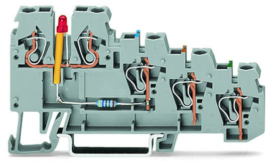 DC 24 V 4-Leiter-Initiatorenklemme; LED rot; für PNP-(plus-)schaltende Initiatoren; 2,5 mm²; CAGE CLAMP®; 2,50 mm²; grau