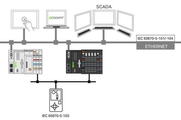 - Verwendung der PFC200-Steuerung als Fernwirkunterstation (Slave) an einer IEC-60870-5-101/-104-Leittechnik (Master)