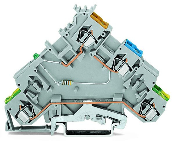 3-Leiter-Initiatoreneinspeiseklemme; LED grün; für NPN-(minus-)schaltende Initiatoren; Einspeisung auf der Initiatorenseite; mit farbig bedruckten Leitereinführungen; 2,5 mm²; CAGE CLAMP®; 2,50 mm²; grau