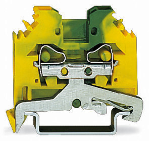 2-Leiter-Schutzleiterklemme; seitliche Beschriftungsaufnahme, Frontverdrahtung, für alle Leiterarten, Schraubenlos, Betätigung mit Schraubendreher TS35 2-Leiter-Schutzleiterklemme; 4 mm²; seitliche Beschriftungsaufnahmen; für Tragschiene 35 x 15 und 35 x 7,5; CAGE CLAMP®; 4,00 mm²; grün-gelb