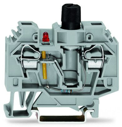 | Kurzbeschreibung | 2-Leiter-Sicherungsklemme,für G-Sicherungseinsatz ¼" x 1¼",mit Defektanzeige durch LED,grau |
