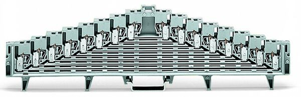 8-Etagen-Rangierklemme; ohne Rasthaken; ein Potential je Ebene; mit Prüföffnung Ø 2,3 mm; Aufdruck: a-b-c-d-e-f-g-h--h-g-f-e-d-c-b-a; für Tragschiene 35 x 7,5; 1,5 mm²; grau