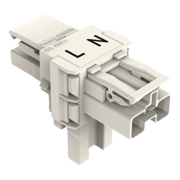 T-Verteiler; 2-polig; Kod. A; 1 Eingang; 2 Ausgänge; 2 Verriegelungsklinken; weiß