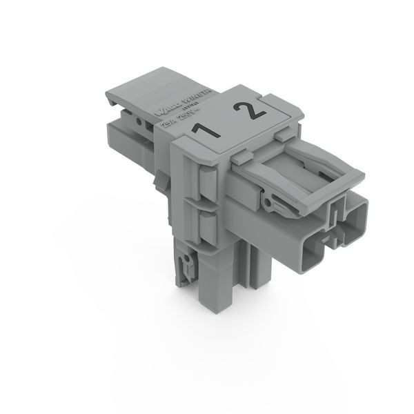 T-Verteiler; 2-polig; Kod. B; 1 Eingang; 2 Ausgänge; 3 Verriegelungsklinken; für fliegende Verbindungen; grau