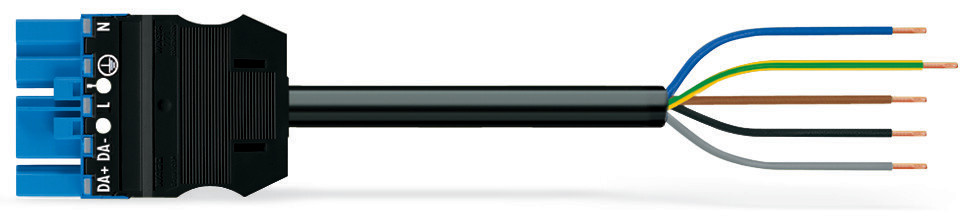 Die konfektionierte Leitung ist mit einem Stecker und einem offenen Leitungsende versehen. WINSTA® ist das Steckverbindersystem, das bestmöglich auf die hohen Anforderungen in der Elektroinstallation zugeschnitten ist. Es gewährt die fehlerfreie Montage von Leitungen und Bauteilen, schnell und sicher. Profitieren auch Sie von der wartungsfreien Federklemmtechnik in der steckbaren Version! Planen Sie Ihre Installation mit Aufdruck von WAGO.- Fehlerfreiheit durch Fehlsteckschutz
