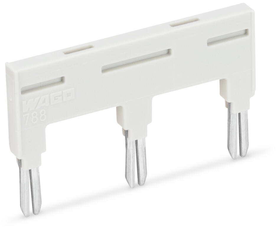 isoliertes, steckbares Brückersystem, sowohl für Spulen- als auch Leistseite, Modul/Modul Brücker; für Brückungsschacht; 3-fach; isoliert; lichtgrau