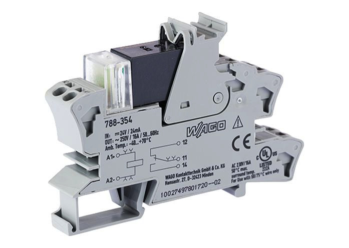 Relais 15mm hoch Relaismodul; Eingangsnennspannung DC 24 V; 1 Wechsler; Grenzdauerstrom 16 A; für Lampenlasten; Statusanzeige rot; 15 mm Baubreite; 2,50 mm²; grau