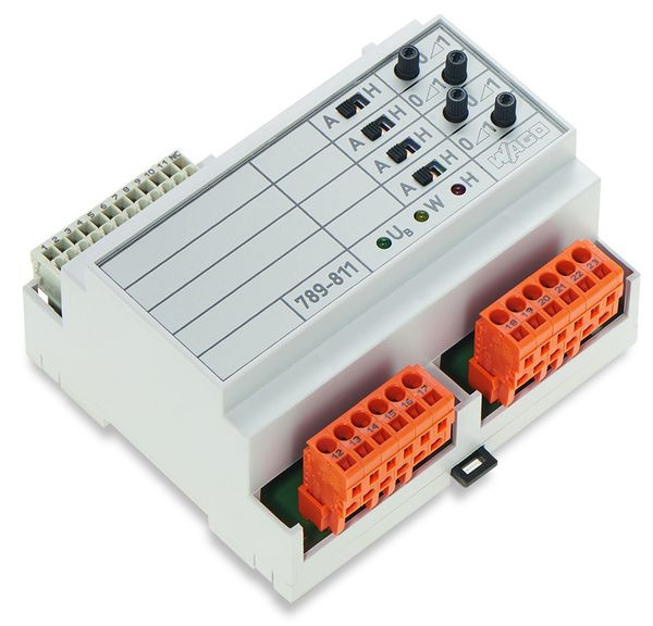 Das analoge Handbedienmodul 789-811 überwacht die verschiedenen analogen Eingänge 0 … 3. In Abhängigkeit des Hand-/Automatik-Schalters und des Watchdog-Eingangs werden die eingestellten Spannung 0 … 10 V an den Ausgang übermittelt.