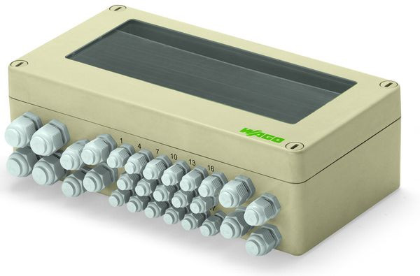 IP65-Systemgehäuse; Polyester (RAL 7032); BxHxT (244x100x164 mm); 4 x M20-, 4 x M16-, 14 x M12-Verschraubung