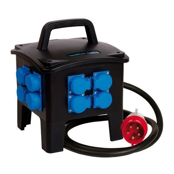 WALTHER Tragbare Vollgummi-Steckdosenkombinationnach IEC 61439-Teil 1 und 4Stapelbares Gehäuse (649) aus unzerbrechlichem, alterungs-, säuren- und laugenbeständigem Vollgummi Farbe: schwarz mit Tragegriff mit selbstschließendem Klarsichtdeckel alle außenliegenden Metallteile sind aus EdelstahlSchutzklasse IISchutzart: IP44Größe ca.: 339 x 270 x 280mm / H-B-T Anschluss:2 Meter Anschlussleitung H07RN-F5G2,5 mit CEE-Stecker 16A 5P 400V 6h Abgänge/ Absicherung:1 Fehlerstromschutzschalter (RCD) 4P 40A/30mA -A-8 Schutzkontaktsteckdosen nach DIN/VDE 0620-1 Steckdosenkombination nach DIN EN 61439:stückgeprüftanschlussfertig verdrahtetBemessungsstrom: 16A