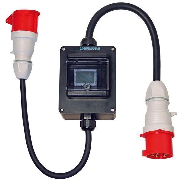 WALTHER CEE Stromzähler-Leitung UniBoxnach IEC 61439-Teil 1 und 4Gehäuse (64Z) aus unzerbrechlichem, alterungs-, säuren- und laugenbeständigem Vollgummi Farbe: schwarz alle außenliegenden Metallteile sind aus EdelstahlSchutzklasse IISchutzart: IP44Größe ca.: 85 x 130 x 160mm / H-B-T Anschluss:1,5 Meter Anschlussleitung H07RN-F5G6 mit CEE-Stecker 32A 5P 400V 6h Abgänge/ Absicherung:1 elektronischer Wechselstromzähler MID beglaubigt1,5 Meter Anschlussleitung H07RN-F5G6 mit CEE-Kupplung 32A 5P 400V 6h Uni-Box nach DIN EN 61439:stückgeprüftanschlussfertig verdrahtetBemessungsstrom: 32A