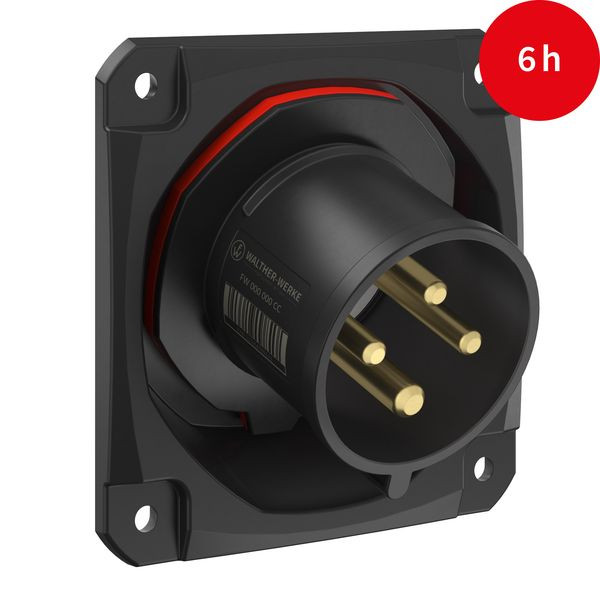 WALTHER CEE NEO Anbaugerätestecker schräg mit schraubenloser Anschlusstechnik (Käfigzugfeder-Technik) 32A 4P 6h 400V IP54 mit Farbringcodierung "rot" Gehäuse aus PA6-Material mit hoch wärmebeständigem Kontaktträger aus PA66-Material Schutz gegen direktes Berühren nach DGUV V3Flanschmaß 110x110mmBefestigungsmaß 90x90mm