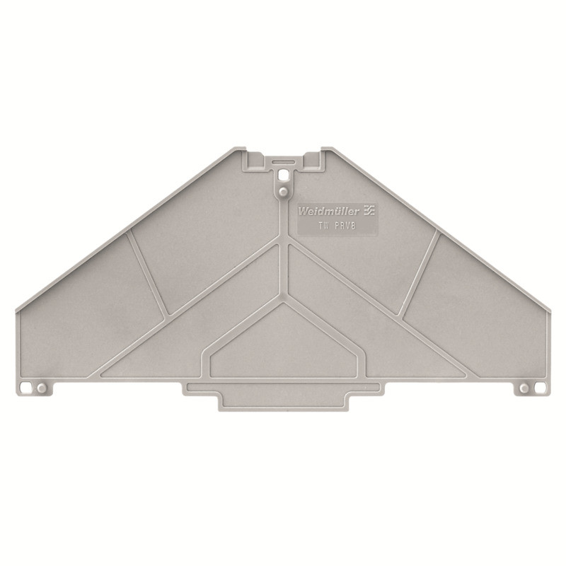 Trennwand für die elektrische Trennung von Reihenklemmen bei benachbarten Querverbindungen. Die Trennwand wird auch zur optisch erkennbaren Trennung von Stromkreisen eingesetzt, um Verdrahtungsfehler zu vermeiden.