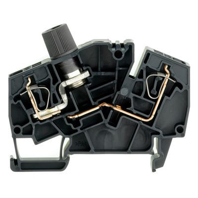Reihenklemme zum Anschließen oder Verbinden von Leitern mit dauerhaft sicherem Kontakt. Gehärteter Stahl hält den mechanischen Kräften stand, Zinn-beschichtetes Kupfer sorgt für beste Leitfähigkeit. Mit herausnehmbarem Träger für einen Sicherungseinsatz.