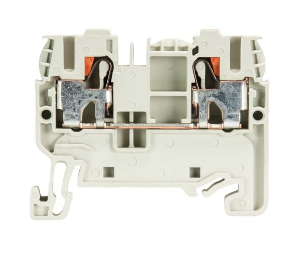 Durchgangsklemme mit Push-In Anschluss für die Montage auf TS 35, Nennquerschnitt: 2,5 mm², Baubreite: 5 mm, Farbe: grau