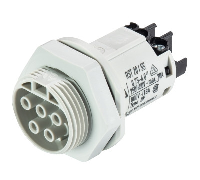 RST® CLASSIC Geräteanschluss, Standard, gerade, M25, Polzahl 5, Ausführung Buchse, Anschlussart Schraubanschluss, Bemessungsspannung 250 V / 400 V, Bemessungsstrom 20 A, Codierfarbe / Kontakteinsatz lichtgrau