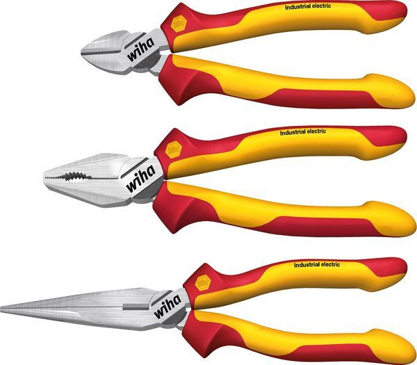 | Kurzbeschreibung | Wiha Zangen Set Industrial electric Kombi-, Flachrundzange, Seitenschneider 3-tlg. (38637) |