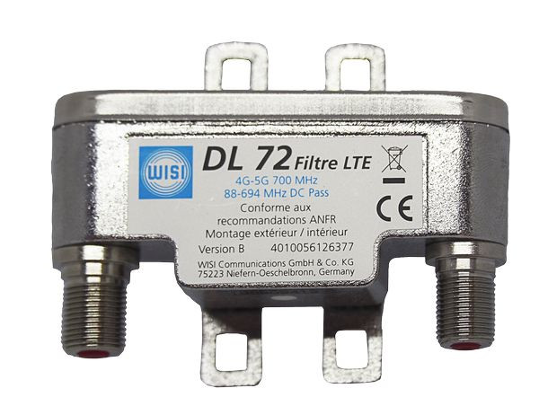Das DL 72 LTE/5G-Filter schuetzt nachfolgende Verteilstrukturen vor stoerenden Mobilfunksignalen. Durchlassbereich des Filters mit niedriger Einfuegedaempfung bis 694 MHz (Kanal 48). Mit einer sehr hohen Sperrtiefe ab 733 MHz unterdrueckt das DL 70 Filter moegliche Stoerungen effektiv und bereits kurz nach dem terrestrischen Empfangsbereich. Eine integrierte F-Buchse und ein F-Stecker ermoeglichen eine einfache inline-Montage. DL 72 ist wassergeschuetzt und eignet sich somit ideal fuer die Ausseninstallation.