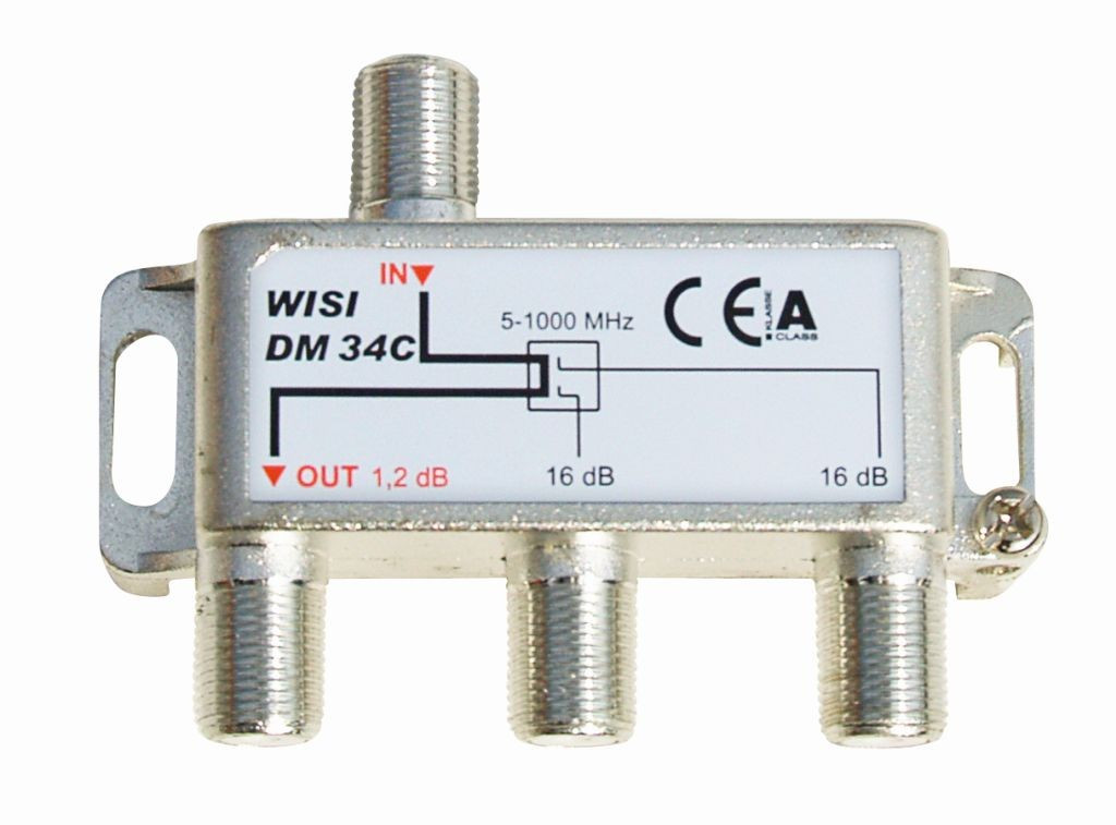 Der DM34 C ist ein 2-fach Abzweiger fuer Kabelfernsehen. Seine Durchgangsdaempfung betraegt 1,2 dB und seine Abzweigdaempfung betraegt 16 dB. Hohe Schirmungseigenschaften (Klasse A) gewaehrleisten eine stoerungsfreie Uebertragung der Signale. Durch F-Buchsen ist ein schneller sicherer Anschluss gewaehrleistet. Zudem ist er Rueckwegtauglich und eignet sich fuer die Innenmontage.