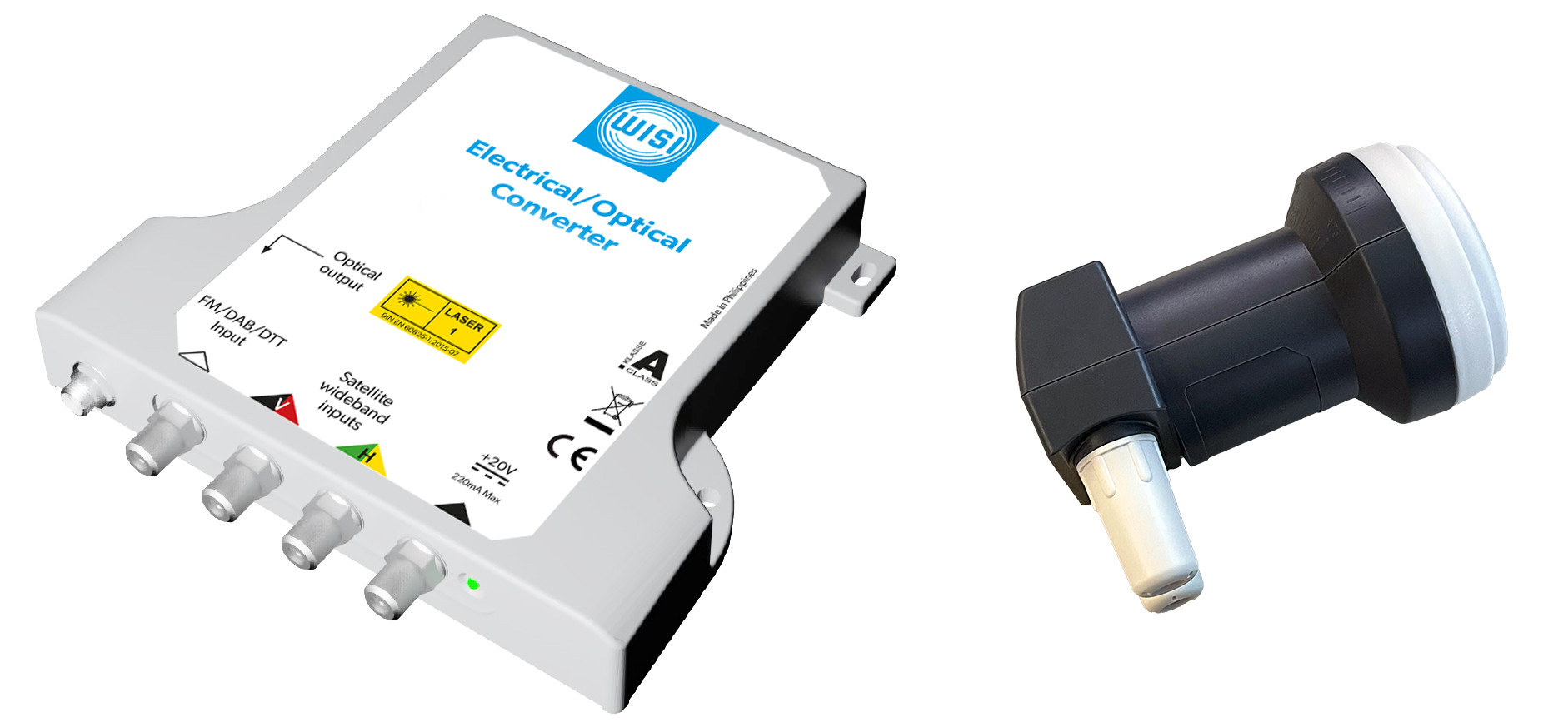 Kit für die Umwandlung von einem Satelliten, DVB-S, DVB-T/T2, DAB und FM in ein optisches Ausgangssignal. Das Kit OL 16 1310 besteht aus einem Wideband LNB OC 07 E und dem elektrisch/optischen Umsetzer OL 17 1310. Konzipiert für den Außeneinsatz kann die Installation direkt am Mastrohr erfolgen (Montagehalterung ab Q2/2022 im Lieferumfang enthalten). Die optische Übertragung erfolgt bei 1310 nm mit einem Ausgangspegel von +8 dbm, was eine Verteilung von bis zu 64 Anschlusspunkten ermöglicht. Das gesamte Kit wird durch das im Lieferumfang enthaltene 20V-Netzteil (EU und UK Adapter) gespeist