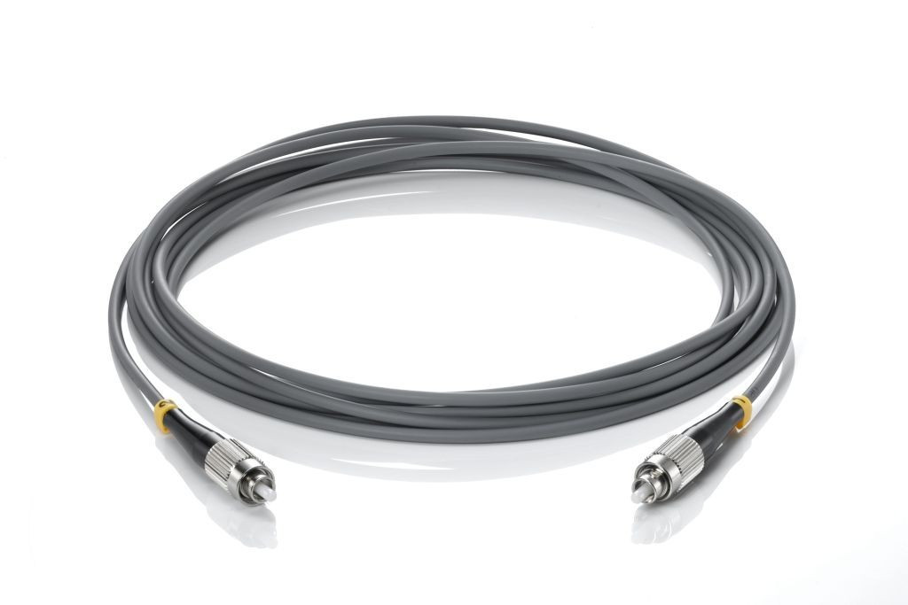 Konfektioniertes Monomode-Glasfaserkabel fuer den Innenbereich, 1 Faser, FC/PC Anschluss an beiden Seiten, Laenge 10 m.