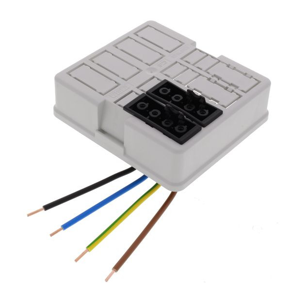| Kurzbeschreibung | Deckel für Abzweigkasten 6mm², vorverdrahtet mit 2x 4-poliger Buchse |