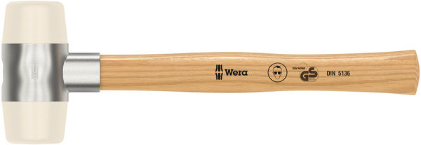 101 Schonhämmer mit Köpfen aus Nylon, # 7 x 61 mmWera Schonhammer: Zweiseitig konische Konstruktion für eine sichere unlösbare Verbindung zwischen Hammerstiel und Kopf. Hammerkopf aus sehr hartem Nylon. Stiel aus hochwertigem Eschenholz. Variabler Einsatz dank nachrüstbarer Schonhammerköpfe. Für Blechbearbeitung, Ausbauarbeiten, Zelt, Hallen- und Messebau. 05000335001