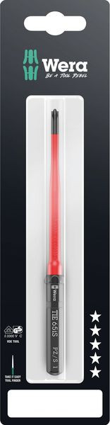 VDE Klinge für Kraftform Kompakt Griff-/Wechselklingensystem. Kombinationsprofil Schlitz und Pozidriv, vor allem zur Verwendung bei Reihenklemmen, Sicherungskästen, Schaltern, Relais. Blitzschneller Austausch der Klinge ohne Sonderwerkzeug. Stückgeprüfte Werkzeuge gem. IEC 60900. Stückprüfung bei 10.000 V für sicheres Arbeiten bei der zugelassenen Spannung von 1.000 V. Reduzierter Klingendurchmesser mit integrierter Schutzisolation, so können tiefliegende Schraub- und Federelemente erreicht und betätigt werden. Die Wera Black Point-Spitze bietet Passgenauigkeit und optimierten Korrosionsschutz. Mit Werkzeugfinder Take it easy: Farbkennzeichnung nach Profilen sowie aufgelaserter Größenangabe. Der Sechskantabrollschutz verhindert das unbeabsichtigte Wegrollen der Klinge.