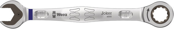 Hochwertiger, metrischer Ringratschen-Maulschlüssel von Wera: Alles, was ein Schlüssel können muss. Und noch viel mehr. Schneller, besser, schöner. Eben ein echter Joker. Die neue Generation der Maul-Ringratschen-Schlüssel. Für Sechskant-Schraubenköpfe bzw. -Muttern. Mit Haltefunktion durch Metallplatte im Maul, die die Gefahr des Verlierens von Schrauben und Muttern reduziert. Die auswechselbare Metallplatte im Maul sichert mit extra harten Zähnen Schrauben und Muttern und reduziert die Abrutschgefahr. Der integrierte Endanschlag kann das Abrutschen vom Schraubenkopf nach unten verhindern und ermöglicht das Aufbringen hoher Drehmomente. Die Doppelsechskantgeometrie sorgt für die formschlüssige Verbindung mit Schraube oder Mutter und damit für die Verringerung der Abrutschgefahr. Ein Rückschwenkwinkel von nur 30° auf der Maulseite vermeidet zeitintensives Wenden des Schlüssels beim Schrauben. Ratschenmechanik auf der Ringseite mit außergewöhnlich hoher Feinverzahnung von 80 Zähnen für Flexibilität auch in engen Bauräumen. Die spezielle Schmiedegeometrie sorgt für hohe Drehmomentübertragung und hohe Biegungssteifigkeit. Gefertigt aus leistungsfähigem Chrom-Molybdän-Stahl mit Nickel-Chrom Beschichtung für hohen Korrosionsschutz. Mit Werkzeugfinder Take it easy: Farbkennzeichnung nach Größen.