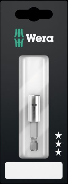 Universalhalter für die Aufnahme von Bits mit 1/4"-Außensechskantantrieb nach DIN ISO 1173-C 6,3. Edelstahlhülse für besonderen Korrosionsschutz. 1/4"-Sechskant, passend für Schraubermaschinen mit Aufnahme nach DIN ISO 1173-F 6,3.