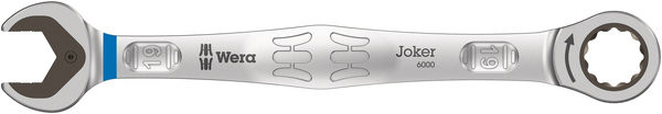 Hochwertiger, metrischer Ringratschen-Maulschlüssel von Wera: Alles, was ein Schlüssel können muss. Und noch viel mehr. Schneller, besser, schöner. Eben ein echter Joker. Die neue Generation der Maul-Ringratschen-Schlüssel. Für Sechskant-Schraubenköpfe bzw. -Muttern. Mit Haltefunktion durch Metallplatte im Maul, die die Gefahr des Verlierens von Schrauben und Muttern reduziert. Die auswechselbare Metallplatte im Maul sichert mit extra harten Zähnen Schrauben und Muttern und reduziert die Abrutschgefahr. Der integrierte Endanschlag kann das Abrutschen vom Schraubenkopf nach unten verhindern und ermöglicht das Aufbringen hoher Drehmomente. Die Doppelsechskantgeometrie sorgt für die formschlüssige Verbindung mit Schraube oder Mutter und damit für die Verringerung der Abrutschgefahr. Ein Rückschwenkwinkel von nur 30° auf der Maulseite vermeidet zeitintensives Wenden des Schlüssels beim Schrauben. Ratschenmechanik auf der Ringseite mit außergewöhnlich hoher Feinverzahnung von 80 Zähnen für Flexibilität auch in engen Bauräumen. Die spezielle Schmiedegeometrie sorgt für hohe Drehmomentübertragung und hohe Biegungssteifigkeit. Gefertigt aus leistungsfähigem Chrom-Molybdän-Stahl mit Nickel-Chrom Beschichtung für hohen Korrosionsschutz. Mit Werkzeugfinder Take it easy: Farbkennzeichnung nach Größen.