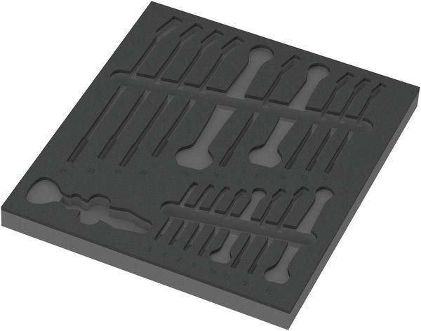 1 langlebige Schaumstoffeinlage, ohne Werkzeug; 2-farbig zur schnellen Erkennung von fehlenden Teilen; Breite x Höhe x Tiefe: 344 x 30 x 392 mm; Ersatzschaumstoffeinlage für Wera Artikel 9731; geeignet für den Tool Rebel Werkstattwagen.