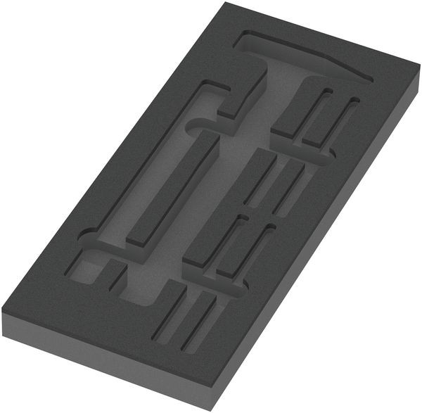1 langlebige Schaumstoffeinlage, ohne Werkzeug; 2-farbig zur schnellen Erkennung von fehlenden Teilen; Breite x Höhe x Tiefe: 172 x 30 x 392 mm; Ersatzschaumstoffeinlage für Wera Artikel 9782; geeignet für den Tool Rebel Werkstattwagen.