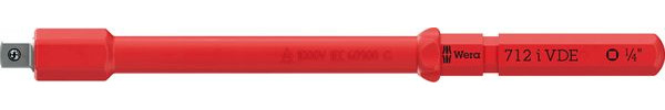 Isolierte Adapterklinge. Die Klinge adaptiert von 9 mm Außensechskant auf 1/4" Außenvierkant. Sie kann mit den isolierten Wera Kraftform Kompakt VDE Handhaltern mit 9 mm Innensechskantaufnahme verwendet werden. Sie ist für isolierte Wera 1/4" Steckschlüsseleinsätze (Nüsse) und 1/4" Bitnüsse geeignet. Die Stückprüfung bei 10.000 Volt gemäß IEC 60900 garantiert sicheres Arbeiten unter Spannung bis 1.000 Volt.