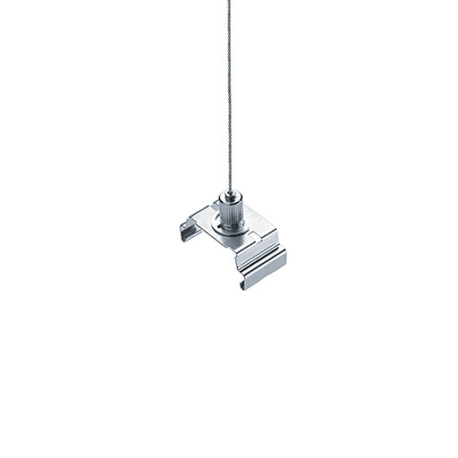 Seilabhängung für eine werkzeuglose Verbindung der Tragschiene mittels CLIX-Technik. Befestigungsfeder aus nicht rostendem Federstahl V2A. Abmessungen: Durchmesser 2 x 4000 mm Gewicht: 0,12 kg