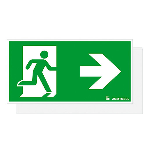 Sicherheitszeichen für CROSSIGN 160 MSC/TEC-GP Abdeckung mit Sicherheitszeichen , PC, mit Digitaldruck, Sicherheitszeichen gemäß ISO 7010: 1seitig, Symbol: Rettungsweg/Notausgang. Richtungspfeil zur Seite, Abmessung: 322 x 5 x 160 mm, Gewicht: 0,39 kg.